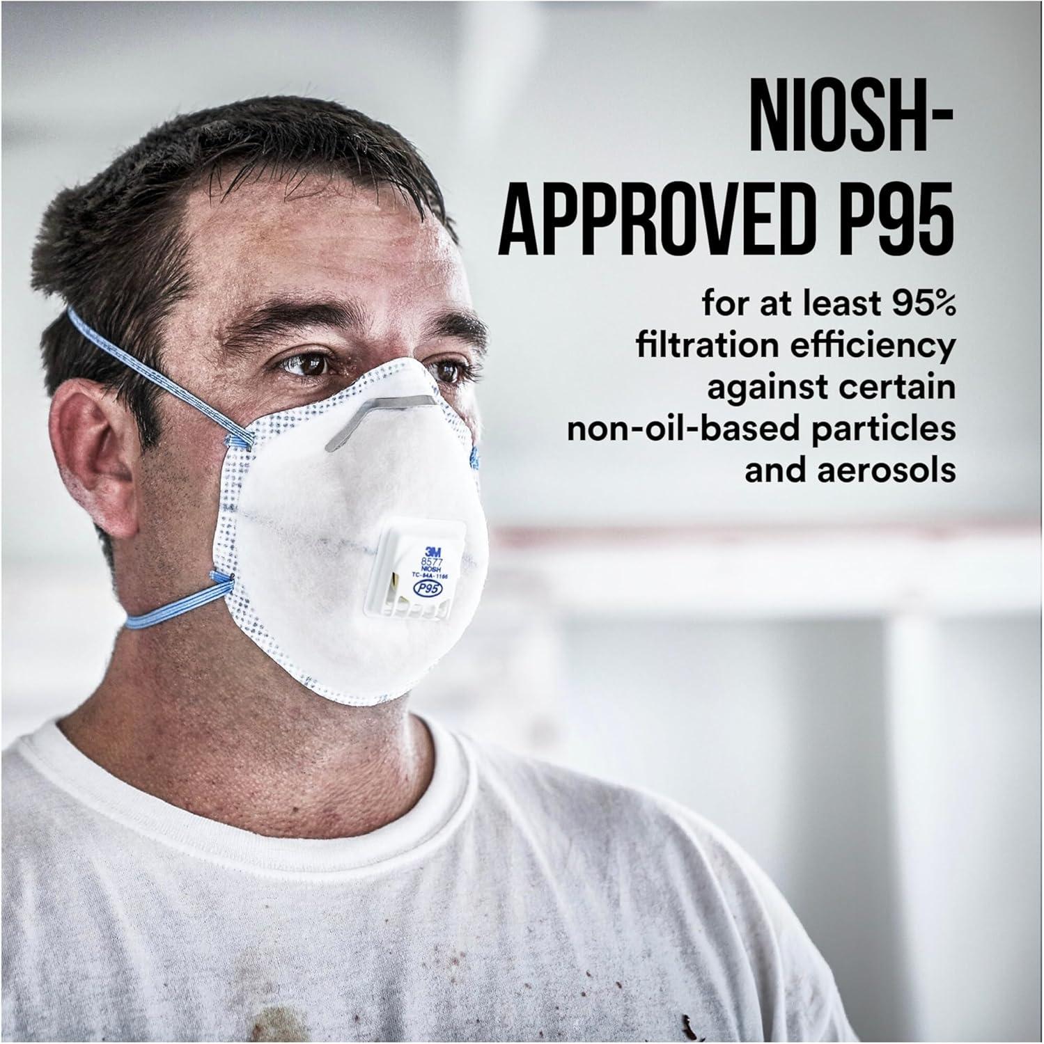 NIOSH-APPROVED P95 for at least 95 percent filtration efficiency against certain solid and liquid aerosols including oils