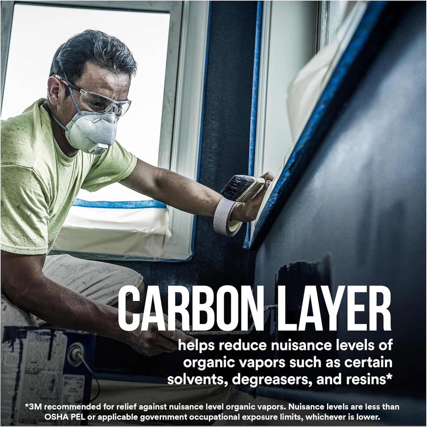 CARBON LAYER helps reduce nuisance levels of organic vapors such as certain solvents, degreasers, and resins*. *3M recommended for relief against nuisance level organic vapors. Nuisance levels are less than OSHA PEL or applicable government occupational exposure limits, whichever is lower