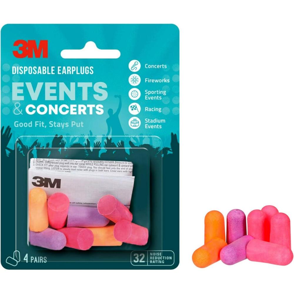 3M Disposable Earplugs Events & Concerts, 4 Pairs (8 Total Plugs), Noise Reduction Rating (NRR) 32 dB, Good Fit, Stays Put, Soft & Smooth Ear Plug Design, Easy To Insert & Remove (EPEC-4BC-SIOC)(4 Count (Pack of 1))