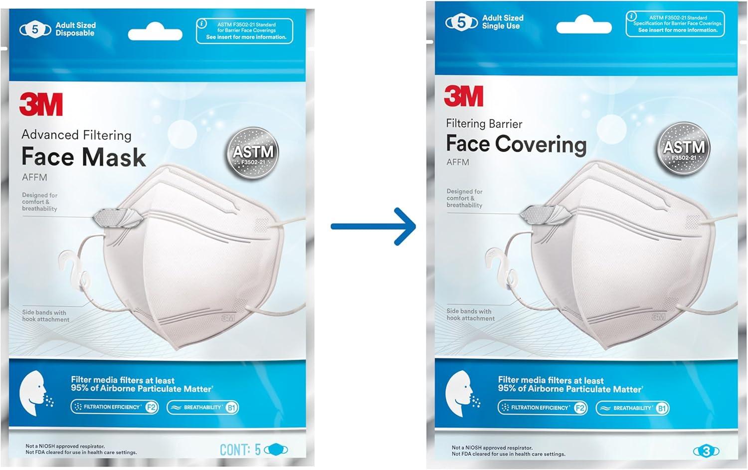 Same product with a new name. 3M Advanced Filtering Face Mask is changing to 3M Filtering Barrier Face Covering