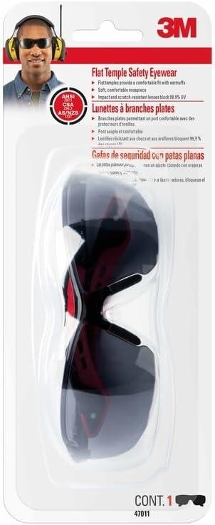 3M Flat Temple Safety Eyewear with Scratch Resistant Lens(Grey)