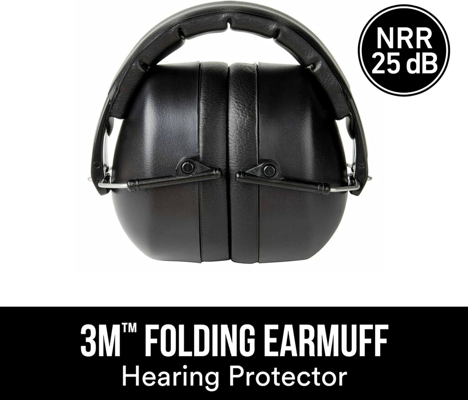 Compact and effective, 3M Folding Earmuffs deliver hearing protection when you're on the job and fold up neatly when the day is through. Designed with comfort in mind, these protective earmuffs feature soft ear cushions and a padded headband, while the adjustable design helps accommodate every member of your crew. Whether you're jackhammering or completing a weekend project at home, count on the ear protection of 3M Folding Earmuffs. Noise Reduction Rating (NRR) 25dB*.