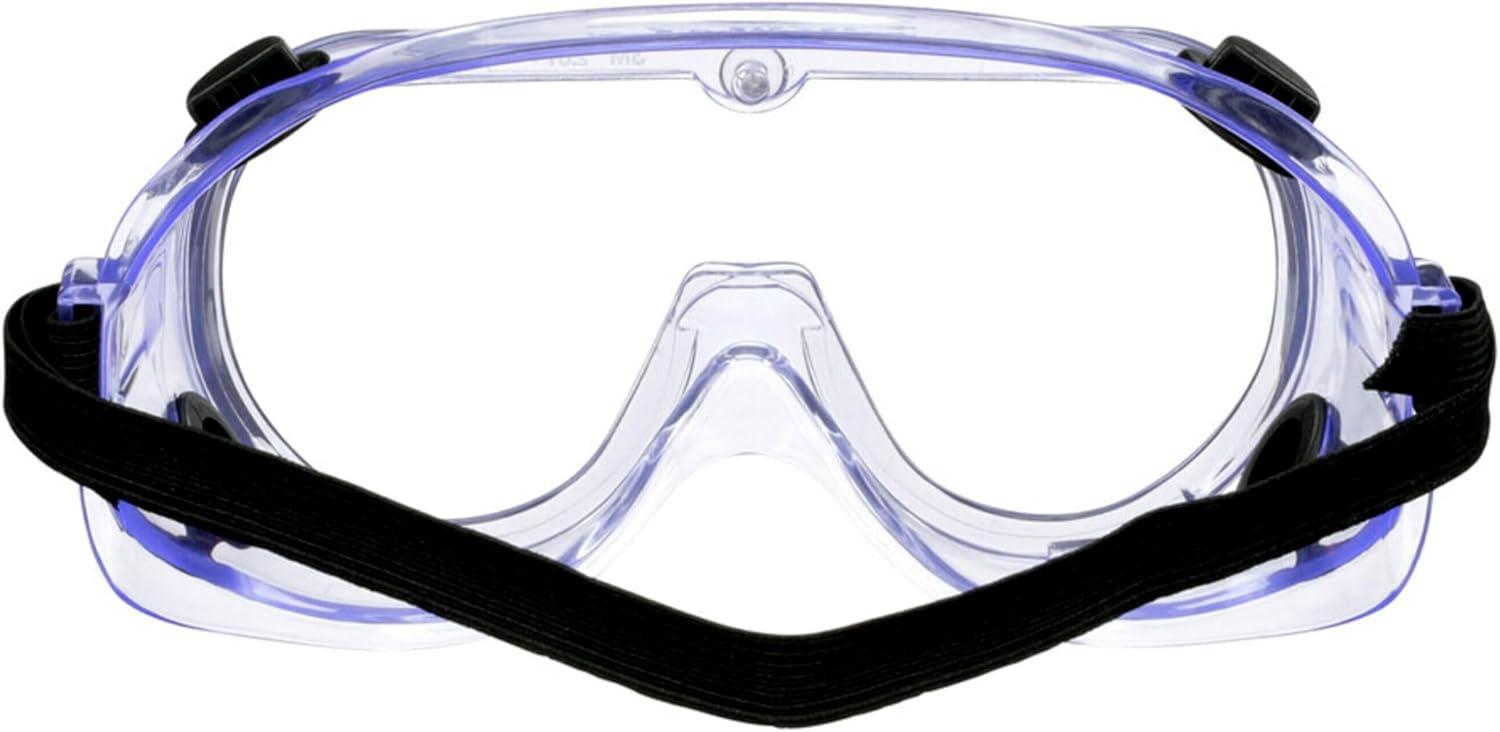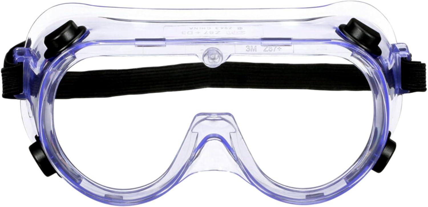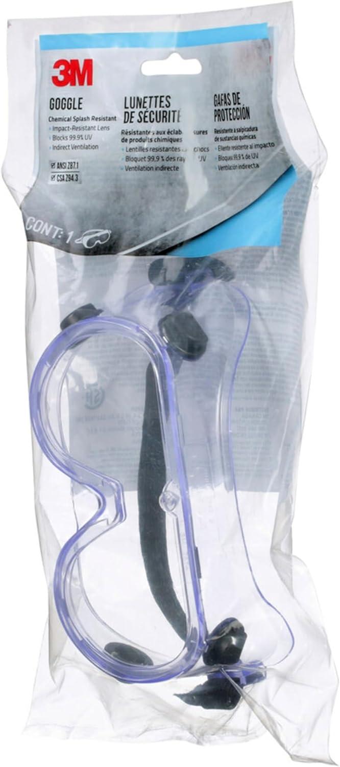 Let's face it–some jobs are messy, but with the help of the 3M Chemical Splash/Impact Goggles you can protect your eyes. Equipped with a tough, polycarbonate lens and soft, pliable shroud, these safety goggles help protect against certain particles and liquids while providing a comfortable fit that conforms to your face. The large size also accommodates some personal eyewear. Strategic vents help ensure protection from liquids while allowing airflow. The stretchy, adjustable strap provides a secure, personalized fit every time. So whether you're spray painting an accent wall or ripping a plank, rely on the powerful protection of 3M Chemical Splash/Impact Goggles.