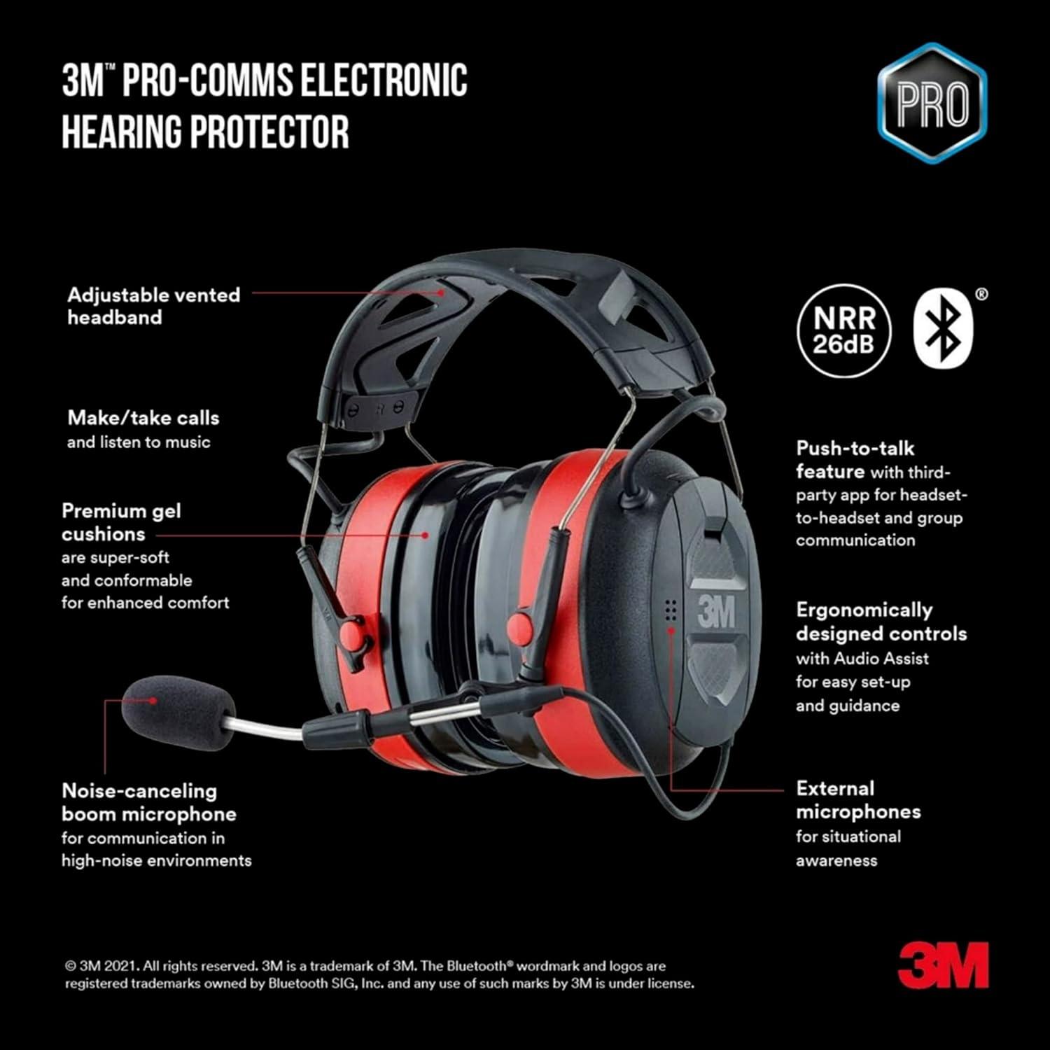Now, there’s no need to choose between staying aware of dangers on the jobsite or protecting your hearing. With the 3M Pro-Comms Electronic Hearing Protector, you can do both — simultaneously. This electronic hearing protector helps protect you from hazardous noises while allowing you to communicate easily with those around you and enhancing your situational awareness. Bluetooth® Wireless Technology seamlessly syncs with your mobile devices, so you can make and receive phone calls through the headset. Push-to-talk feature with third-party app for headset-to- headset and group communication. Premium gel ear cushions are comfortable for extended wear.