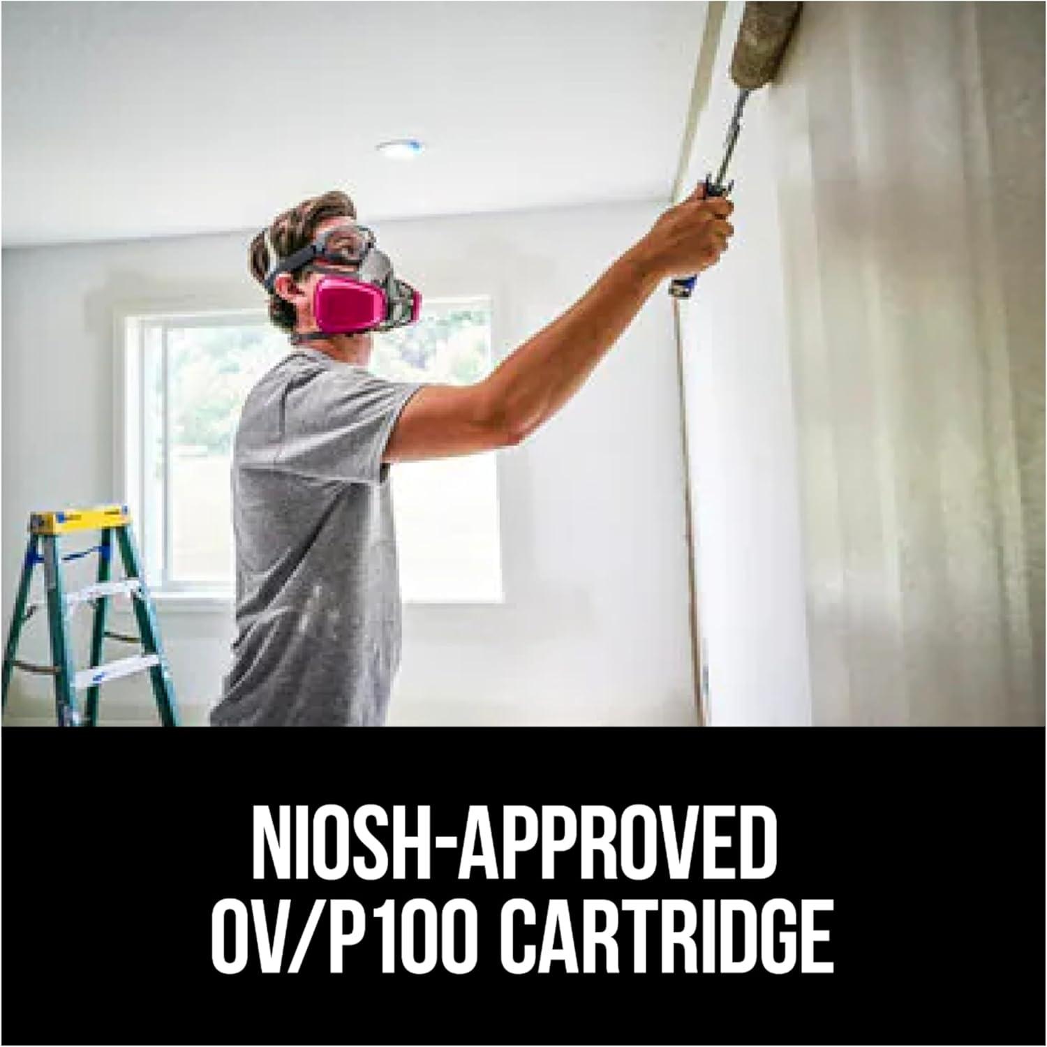 NIOSH-APPROVED OV/P100 RATING filters at least 99.97% of solids and liquid aerosols, as well as oils and certain organic vapors